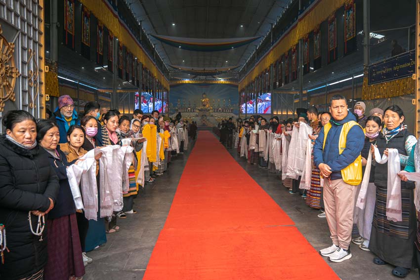 Meanwhile in the pavilion, the congregation began the Offerings to the Gurus, the sutra-based guru puja compiled and composed by His Holiness the 17th Gyalwang Karmapa, which contains the twenty branches.