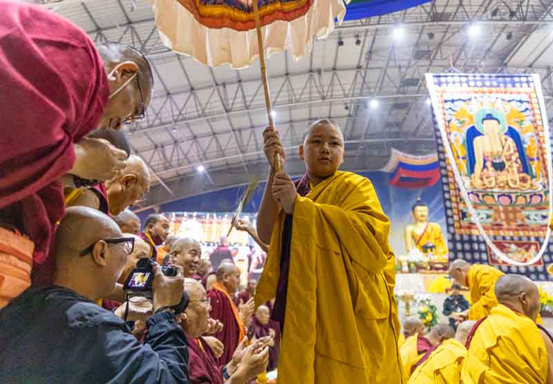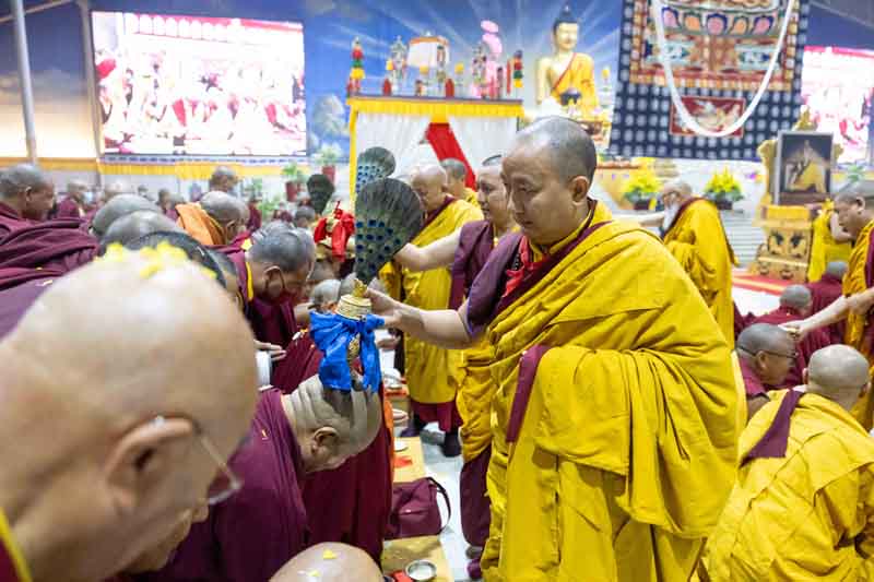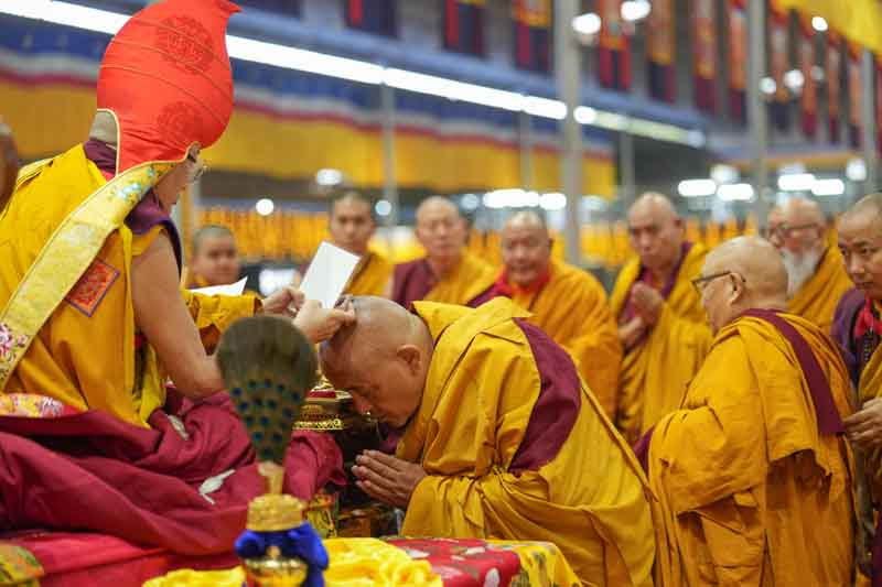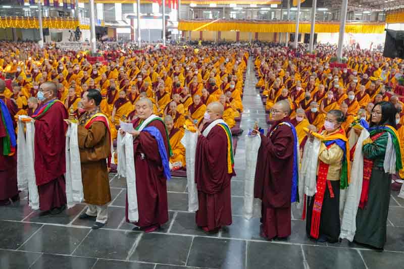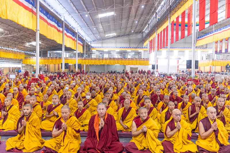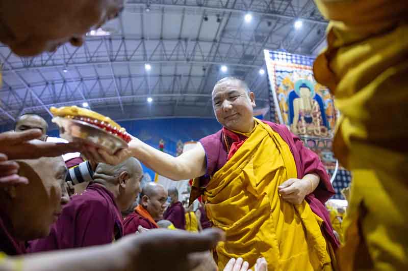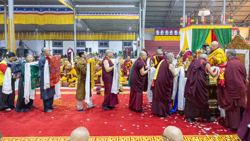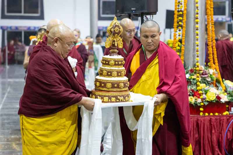 On December 25, 2025, under instructions from the 17th Gyalwang Karmapa, His Eminence Goshir Gyaltsab Rinpoche bestowed the empowerment of Vairocana Abhisaṃbodhi [The Complete Awakening of Vairocana]. The empowerment was attended by thousands of practitioners, both monastic and lay, from India, Nepal, Bhutan and further afield. The empowerment consists of two parts - the preliminary and the main sections. Since the preliminary section had been completed the previous day, today the main empowerment was completed in its entirety.
