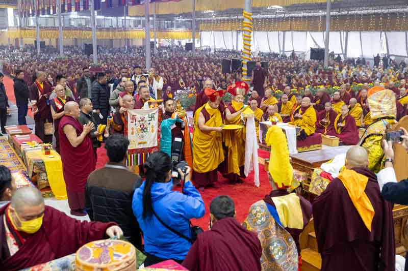 In conclusion, in gratitude for the great kindness demonstrated by Rinpoche, he received an elaborate body-speech-mind mandala offering from the Kagyu Monlam Organisation and sponsors.