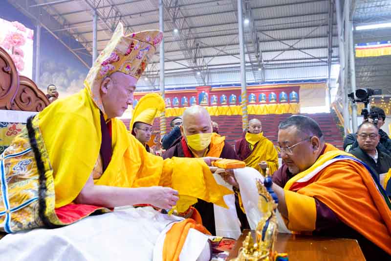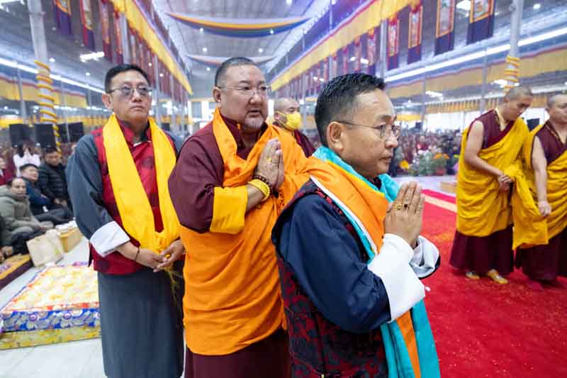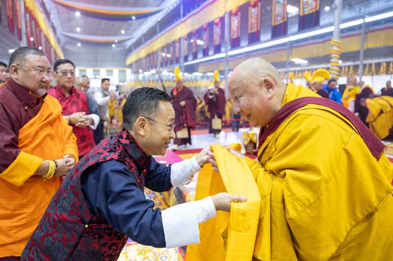 On this occasion, Khenpo Kalsang Nyima expressed gratitude on behalf of the entire Kagyu Monlam Chenmo assembly to both the Chief Minister of Sikkim Prem Singh Tamang and the Minister of Ecclesiastical Affairs Sonam Lama for their pure motivation in the past, present, and future in serving the monasteries, and especially for their immeasurable support and ongoing assistance in helping His Holiness the Gyalwang Karmapa, return to India and especially be allowed to go to Sikkim.