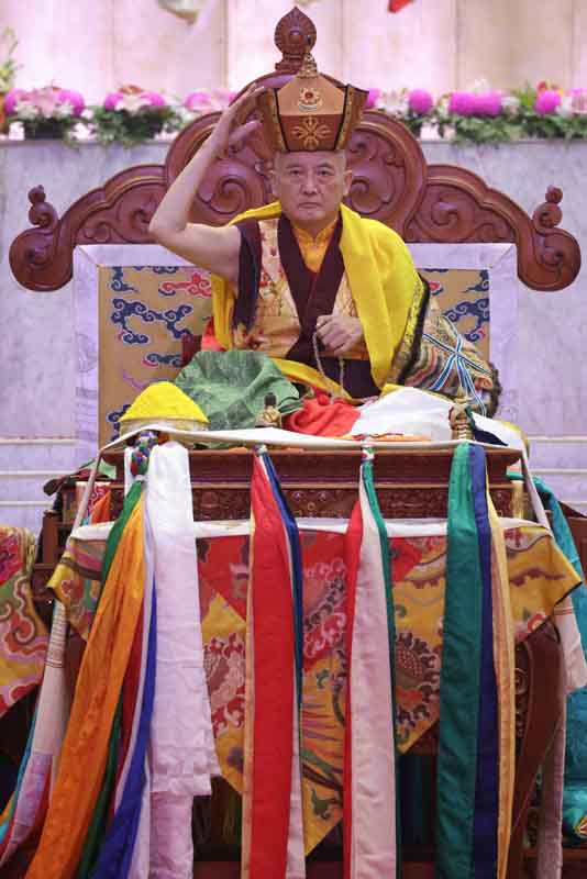 After this short speech, Gyaltsab Rinpoche bestowed the long-life empowerment of Amitayus.