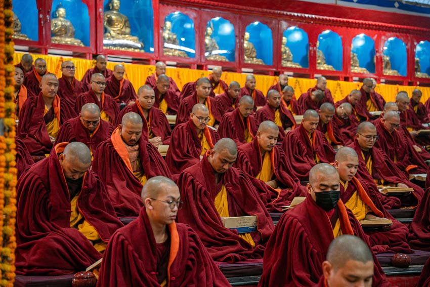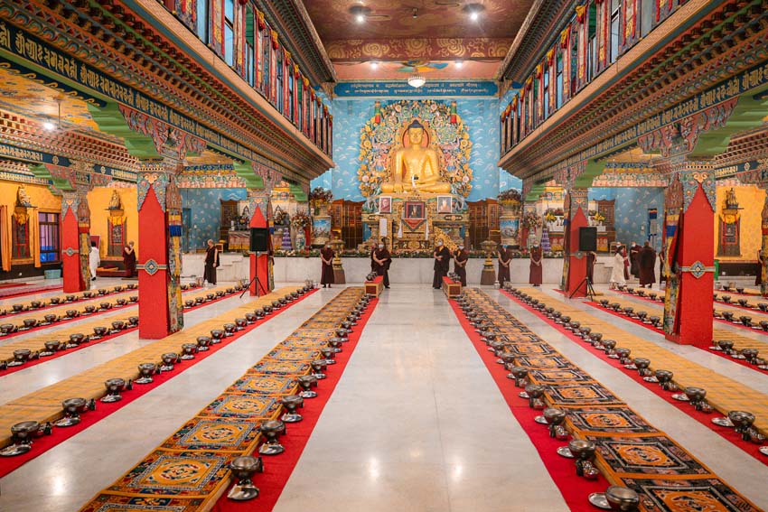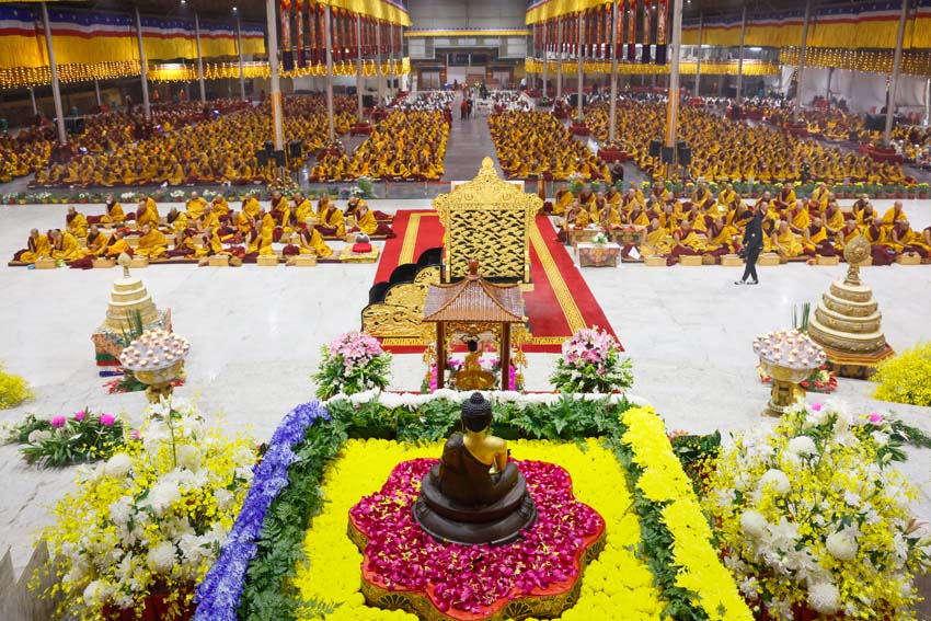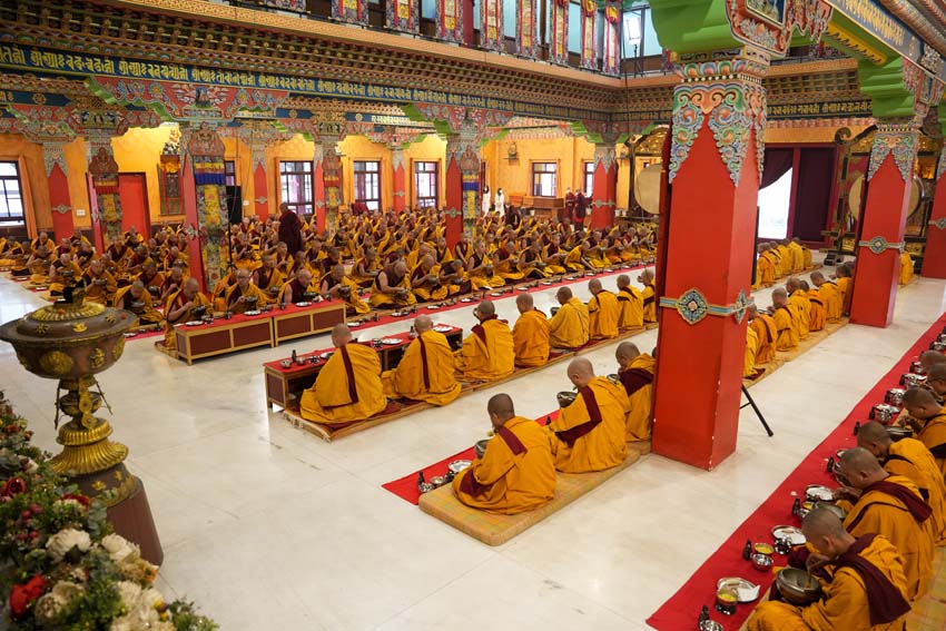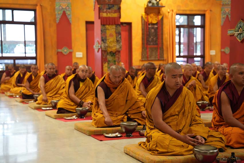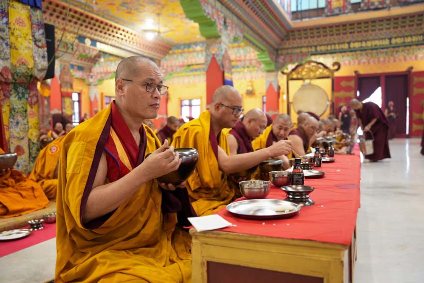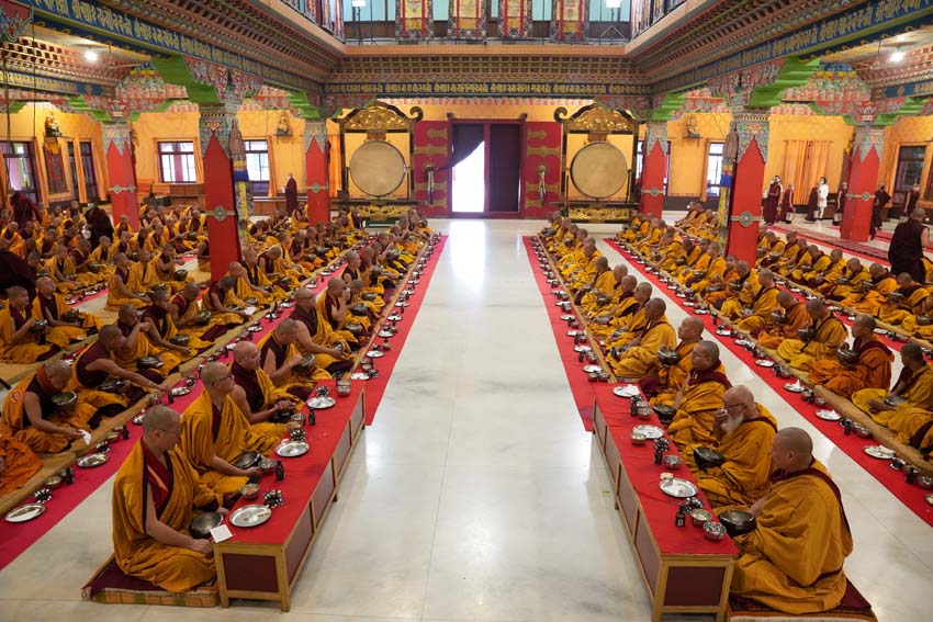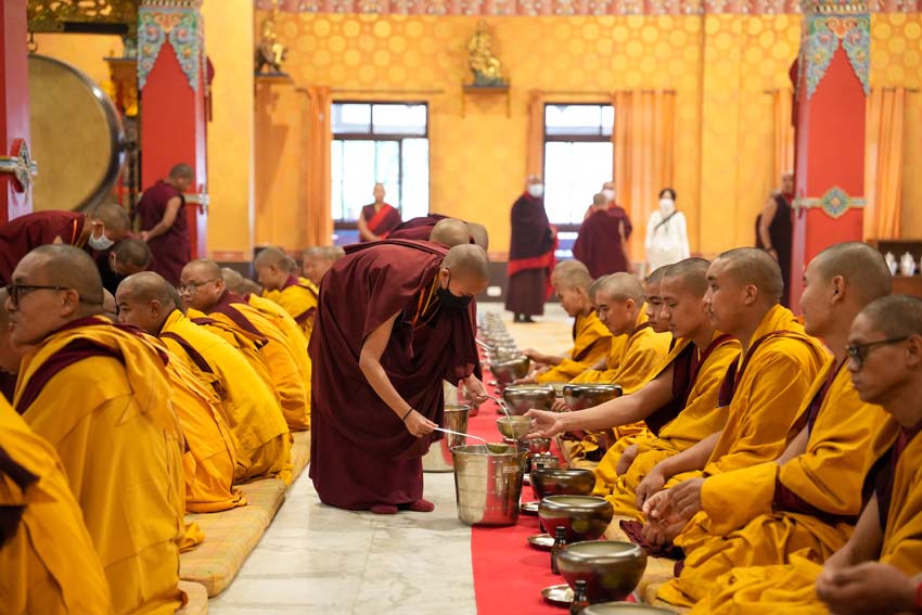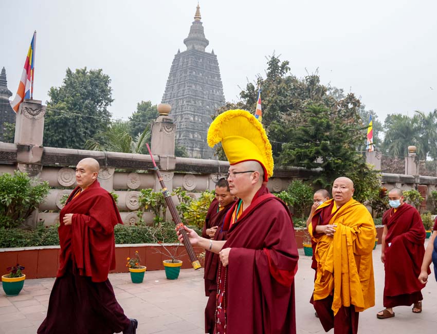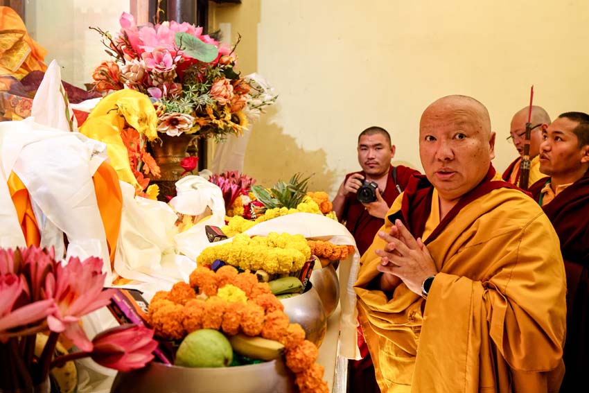 སྔ་དྲོ་ཕྱག་ཚོད་ 8:00 པའི་ཐོག་བཀའ་བརྒྱུད་སྨོན་ལམ་ཚོགས་པས་གོ་སྒྲིག་བྱས་ཏེ་༧སྐྱབས་རྗེ་ཟུར་མང་གར་དབང་རིན་པོ་ཆེ་མཆོག་དང་སྨོན་ལམ་གྱི་ལས་སྣེ་འགའ་ཞིག་བཅས་རྡོར་གདན་བྱང་ཆུབ་མཆོད་རྟེན་རིན་པོ་ཆེའི་ནང་། མཉམ་མེད་ཐུབ་པའི་དབང་པོའི་སྐུ་དངོས་སུ་འཚོ་ཞིང་བཞུགས་པ་ཉིད་དང་སྒོ་ཀུན་ནས་མཚུངས་པའི་དྲུང་དུ་ན་བཟའ་རིན་པོ་ཆེ་དང་ལྷུང་བཟེད་འགེངས་པར་ཕུལ།