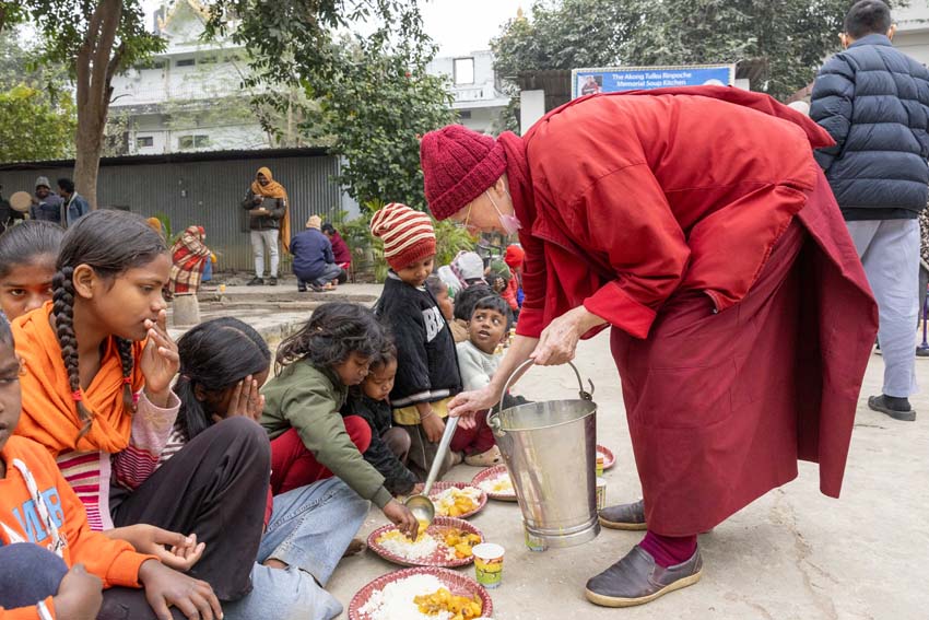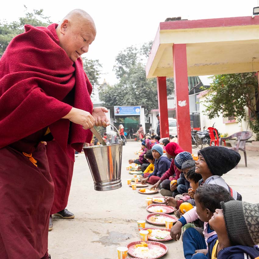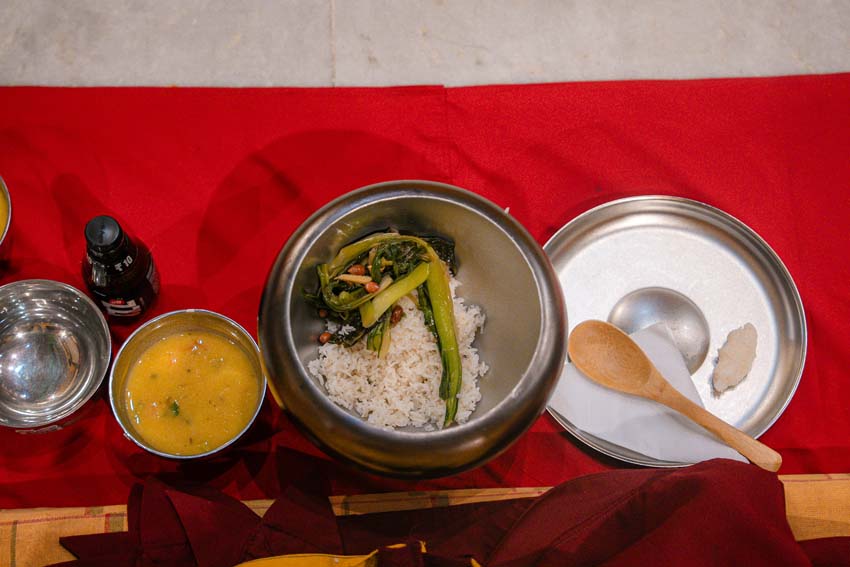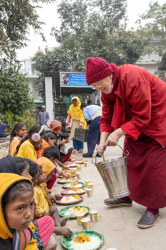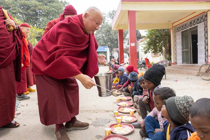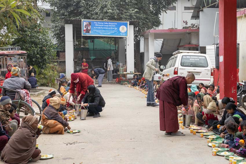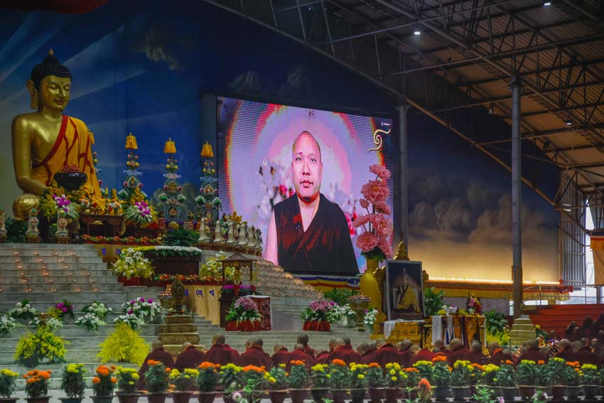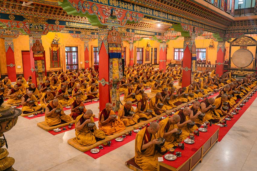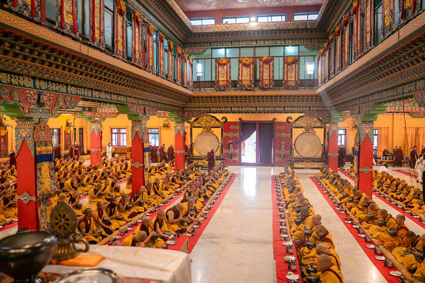 སྔ་དྲོ་ཕྱག་ཚོད་ 8:00 པའི་ཐོག་བཀའ་བརྒྱུད་སྨོན་ལམ་ཚོགས་པས་གོ་སྒྲིག་བྱས་ཏེ་༧སྐྱབས་རྗེ་ཟུར་མང་གར་དབང་རིན་པོ་ཆེ་མཆོག་དང་སྨོན་ལམ་གྱི་ལས་སྣེ་འགའ་ཞིག་བཅས་རྡོར་གདན་བྱང་ཆུབ་མཆོད་རྟེན་རིན་པོ་ཆེའི་ནང་། མཉམ་མེད་ཐུབ་པའི་དབང་པོའི་སྐུ་དངོས་སུ་འཚོ་ཞིང་བཞུགས་པ་ཉིད་དང་སྒོ་ཀུན་ནས་མཚུངས་པའི་དྲུང་དུ་ན་བཟའ་རིན་པོ་ཆེ་དང་ལྷུང་བཟེད་འགེངས་པར་ཕུལ།