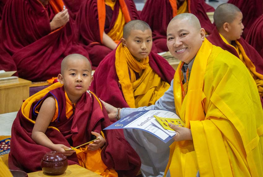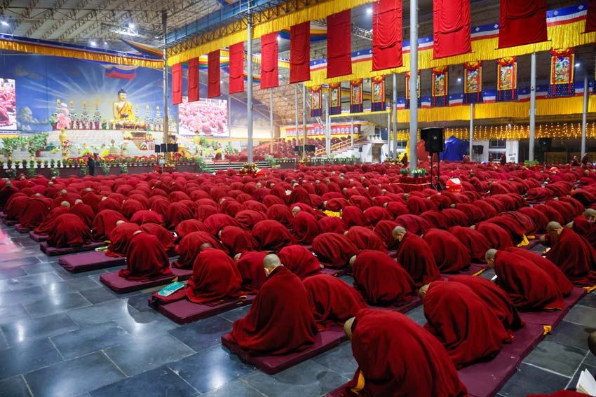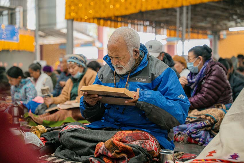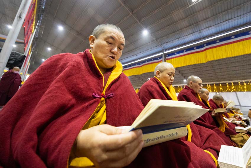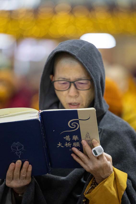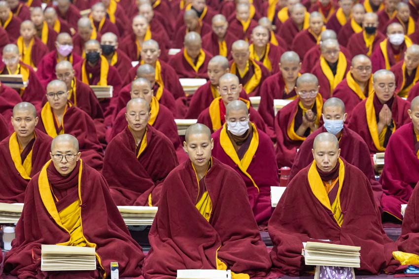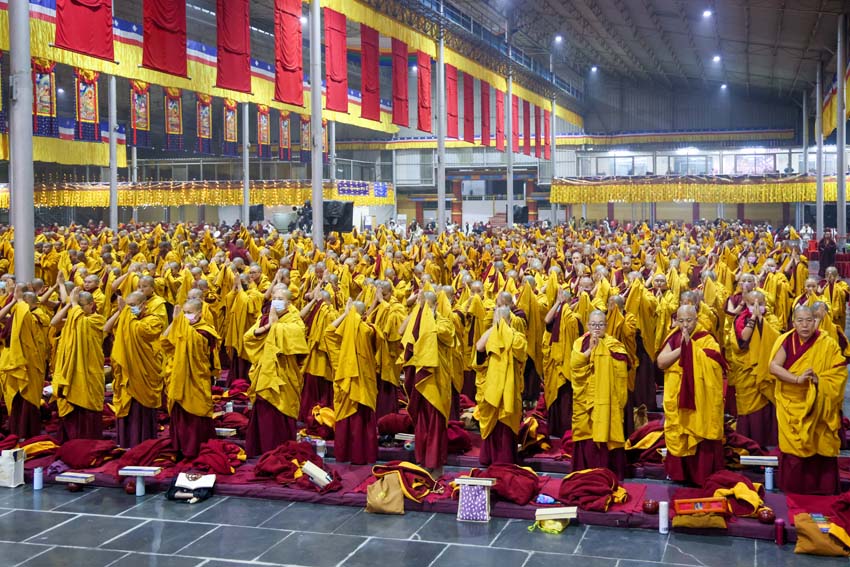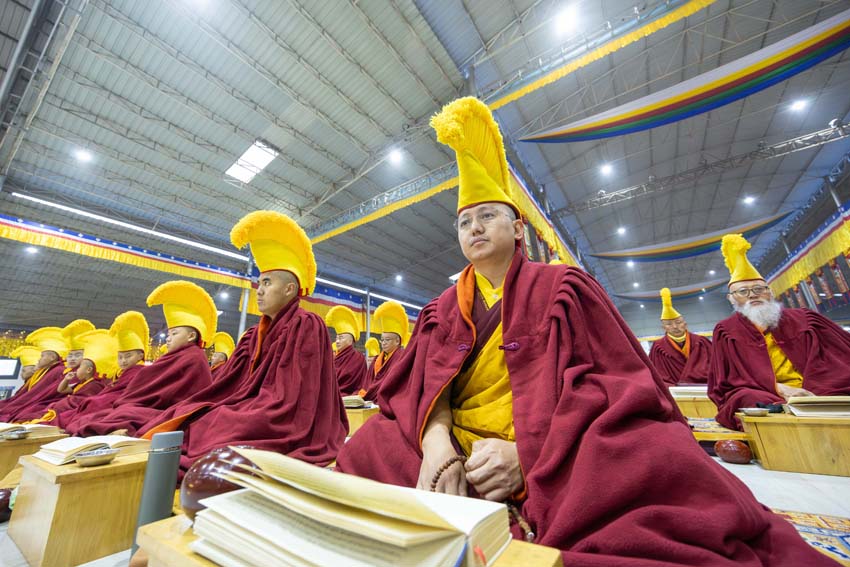 ཕྱག་ཚོད་9:00-10:30 པའི་ཐོག་མཎྜལ་ཚོམ་བུ་བདུན་མ་དང་བྱང་སྡོམ་བརྒྱུད་འདེབས་སོགས་དབྱངས་རྟ་སྙན་པོས་སྣ་དྲངས་ཏེ། དཔལ་༧རྒྱལ་དབང་༧ཀརྨ་པ་མཆོག་ལ་དད་ཅན་སྦྱིན་བདག་རྣམ་པས་སྐུ་གསུང་ཐུགས་ཀྱི་མཎྜལ་རྟེན་དོད་འདེགས་འབུལ་ཞུས། ཐེངས་དེའི་སྨོན་ལམ་སྐབས་ཀྱི་གསུང་ཆོས་དཔལ་ལྡན་དུས་གསུམ་མཁྱེན་པའི་ཚོགས་ཆོས་བཀའ་ཁྲིད་དབུ་ཚུགས་གནང་། བརྗོད་བྱ་གཙོ་བོ་ཤེས་རབ་ཀྱི་སྐོར་དང་། དེའི་ནང་ནས་ཐོས་བསམ་སྒོམ་པའི་ཤེས་རབ་སོགས་ཀྱི་སྐོར་གོ་དོན་རྒྱ་ཆེ་ལ་གཏིང་ཟབ་པའི་དཔེ་མཚོན་དང་བཅས་པའི་ཞི་བསིལ་དམ་པའི་ཆོས་ཀྱི་བདུད་རྩིས་ཚིམ་པར་མཛད་ཅིང་། དད་ལྡན་སེར་སྐྱ་ཐམས་ཅད་མཐོང་ཐོས་དྲན་རེག་གིས་སྐལ་བཟང་དགའ་སྟོན་མངོན་དུ་གྱུར། དེའི་རྗེས་རྗེ་ཙོང་ཁ་པས་མཛད་པའི་ལམ་རིམ་སྨོན་ལམ་སྙན་པའི་དབྱངས་ཀྱི་རྟ་དྲངས་སྐབས། དད་ལྡན་ཕྱི་ནང་མི་རིགས་སེར་སྐྱ་མཐའ་དག་གི་དད་པའི་སྤུ་ལོང་རབ་ཏུ་གཡོས་ཤིང་ཐལ་མོ་སྦྱར། ཐར་པ་ངེས་ལེགས་ཀྱི་བག་ཆགས་བཟང་པོ་འཇོག་པའི་རྒྱུར་གྱུར་པའི་སྐྱ་རེངས་ཤར།