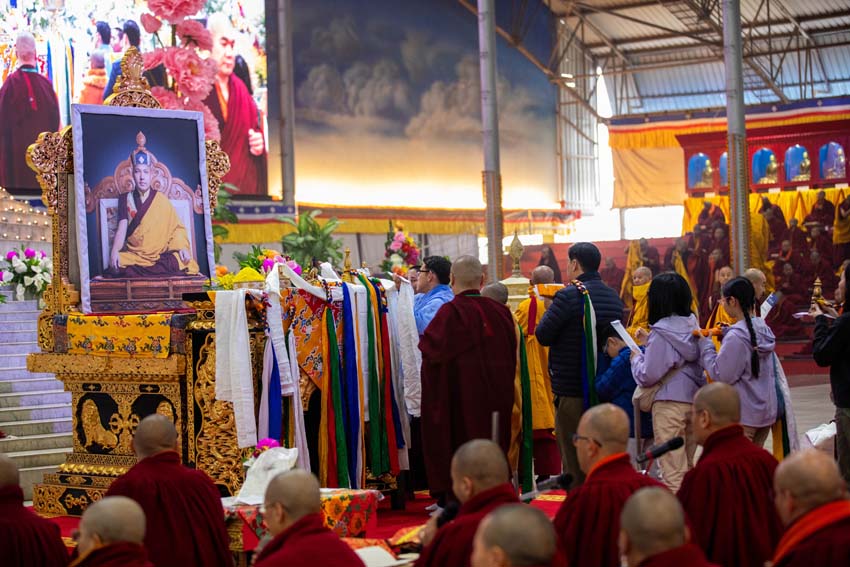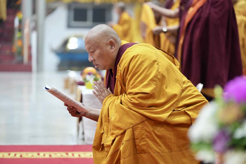 "ད་རེས་བཀའ་བརྒྱུད་སྨོན་ལམ་ཆེན་མོ་ཐེངས་བཞི་བཅུ་པའི་ཚོགས་མགོན་ལ་ཕེབས་པའི་༧སྐྱབས་མགོན་༧རྒྱལ་བའི་རྒྱལ་ཚབ་དྲུང་གོ་ཤྲི་ཆེན་པོ་མཆོག་དང་། ༧སྐྱབས་རྗེ་ཟུར་མང་གར་དབང་རིན་པོ་ཆེ་དབུས་པའི་བླ་སྤྲུལ་དགེ་བའི་བཤེས་གཉེན་རྣམ་པ་ཚོ་དང་། ཕྱོགས་བཅུའི་དགེ་འདུན་གྱི་སྡེ་བཙུན་པ་དང་བཙུན་མ་རྣམ་པ་ཚོ། ཕྱོགས་མཐའ་ཁག་ནས་ཕེབས་པའི་དད་ལྡན་མི་དམངས་བོད་རིགས་སྤུན་ཟླ་དང་། ཧི་མ་ལཱ་ཡ་ཡི་སྤུན་ཟླ་རྣམ་པ་ཚོ་གཙོ་བོར་གྱུར་པའི་ཚང་མ་ལ་བཀྲ་ཤིས་པའི་འཚམས་འདྲི་ཞུ་ཡ་ཡིན།