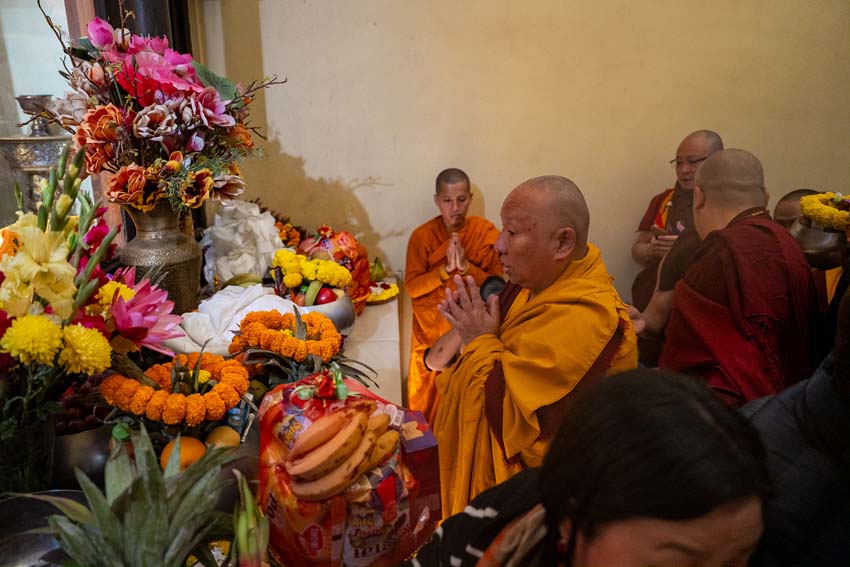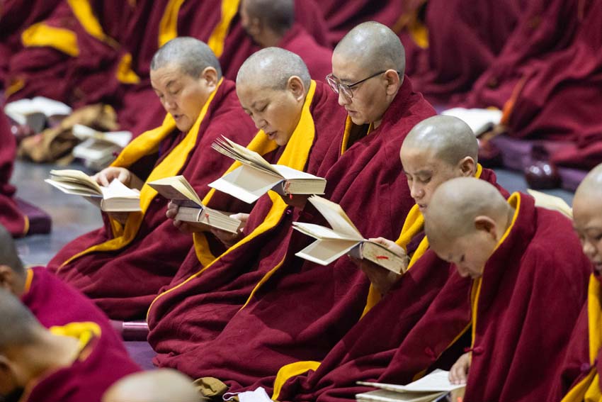 སླར་ཡང་ཉིན་རྒྱབ་ཕྱག་ཚོད་ ༡ དང་ཕྱེད་ཀའི་ཐོག་ཚོགས་བཅར་བ་སེར་སྐྱ་ཀུན་སྨོན་ལམ་ཆོས་ར་ཆེན་མོར་འདུ་འཛོམས་གྲུབ་རྟིང་ཉིན་རྒྱབ་ཚོགས་ཐེངས་དང་པོ་འགོ་འཛུགས་ཞུས་པ་དང་། གོ་ལ་འདིའི་བསྟན་འགྲོ་སྤྱིའི་སྐུ་རིམ་དུ་དམིགས་ཏེ་དམིགས་བསལ་གྱིས་རྗེ་བཙུན་མ་འཕགས་མ་སྒྲོལ་མའི་བསྟོད་པ་ཉེར་གཅིག་གྲངས་གསོག་མཛད་ཡོད། དེ་ལྟར་དམིགས་བསལ་གྱིས་སྙིང་རྗེའི་བདག་ཉིད་དངོས་གྲུབ་མྱུར་དུ་སྟེར་གནང་མཛད་པའི་རྗེ་བཙུན་འཕགས་མ་སྒྲོལ་མ་ལ་བསྟོད་གསོལ་མཛད་པའི་མཐུས་ཕན་བདེའི་འབྱུང་གནས་དྲི་མེད་རྒྱལ་བསྟན་རིན་པོ་ཆེ་འདི་ཉིད་ཕྱོགས་དུས་གནས་སྐབས་ཀུན་ཏུ་ཁྱབ་ཅིང་། རིས་སུ་མ་ཆད་པའི་བསྟན་འཛིན་སྐྱེས་ཆེན་དམ་པ་མཐའ་དག་སྐུ་ཚེ་རབ་ཏུ་བརྟན་པ་དང་། གོ་ལ་འདིའི་སྒང་ལ་འཚོ་བའི་འགྲོ་བ་མ་ལུས་པ་མཐའ་དག་ཞི་བདེ་འབའ་ཞིག་གི་དཔལ་ལ་ལོངས་སུ་སྤྱོད་ཐུབ་པའི་སྨོན་ལམ་འདུས་པ་ཡོངས་ནས་ལེགས་པར་ཞུས།