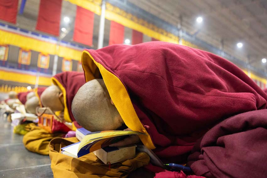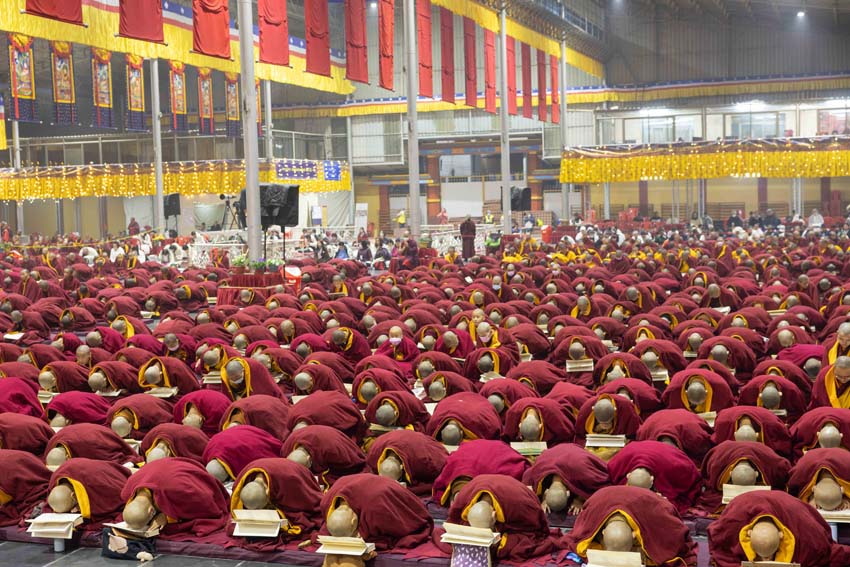 ཉིན་རྒྱབ་ཕྱག་ཚོད་ ༣ པའི་ཐོག་ལོ་ལྟར་བཞིན་བཀའ་བརྒྱུད་སྨོན་ལམ་ཚོགས་པའི་ངོས་ནས་རྒྱལ་ཕྱི་ནང་གཉིས་ནས་ཕེབས་པའི་སྨོན་ལམ་གྱི་ཚོགས་མི་དམིགས་བསལ་བ་རྣམས་ལ་༧སྨོན་ལམ་ཆེན་མོའི་ཚོགས་མགོན་དུ་སུ་ཕེབས་ཀྱང་དེ་ཉིད་ཀྱིས་ཟུར་དུ་མཇལ་ཁ་གནང་རྒྱུ་དང་། ཐུགས་རྗེ་ལེགས་འབུལ་གྱི་བཀའ་སློབ་དང་གསོལ་རས་གནང་སྲོལ་ཡོད་པ་བཞིན། ལོ་འདིར་ཡང་བཀའ་བརྒྱུད་སྨོན་ལམ་ཚོགས་པའི་ངོས་ནས་གསོལ་འདེབས་ཞུས་ཏེ། སྒྲུབ་བརྒྱུད་བསྟན་པའི་གསལ་བྱེད་ཆེན་པོ་༧སྐྱབས་རྗེ་ཟུར་མང་གར་དབང་རིན་པོ་ཆེ་མཆོག་ནས་ཡོངས་དགེ་གཏེར་སྒར་དགོན་གྱི་འདུ་ཁང་ཆེན་མོར་ལོ་འདིའི་སྨོན་ལམ་ཚོགས་མི་དམིགས་བསལ་བ་རྣམས་ལ་མཇལ་ཁ་དང་། ༧སྐྱབས་རྗེ་་རིན་པོ་ཆེ་མཆོག་ནས་གནས་ཆེན་རྡོ་རྗེ་གདན་གྱི་སྨོན་ལམ་ཆེན་མོ་འདིར་ཚོགས་མི་རྣམ་པས་ལྷག་བསམ་རྣམ་དག་གིས་དཔལ་འབྱོར་དང་ལུས་དངོས་ཀྱི་སྒོ་ནས་ཞབས་ཞུ་བསྒྲུབས་པ་ལ་བསྟོད་བསྔགས་ཆེ་བརྗོད་གནང་ཞིང་། བཀའ་བརྒྱུད་སྨོན་ལམ་ཚོགས་པའི་ངོས་ནས་ཐུགས་རྗེ་ཆེ་ཞུ་མཚོན་གསོལ་རས་རེ་གནང་བར་མཛད།