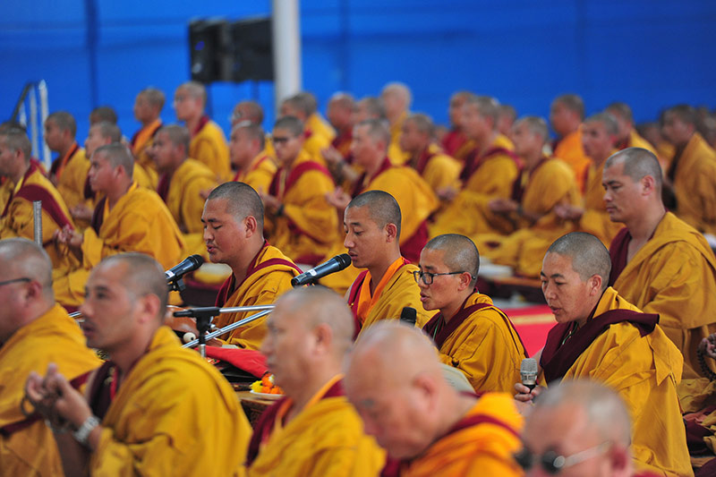 In previous Monlams, Khyechok Palmo noted that they have been seated with the male umzays, but this was the first year that His Holiness instructed that they also were to have microphones. She said, “It is his vision to have us sitting there since the male and female voices together are very nice. During the Arya Kshema since we were already doing this, so we were instructed to sit with the male umzay.”