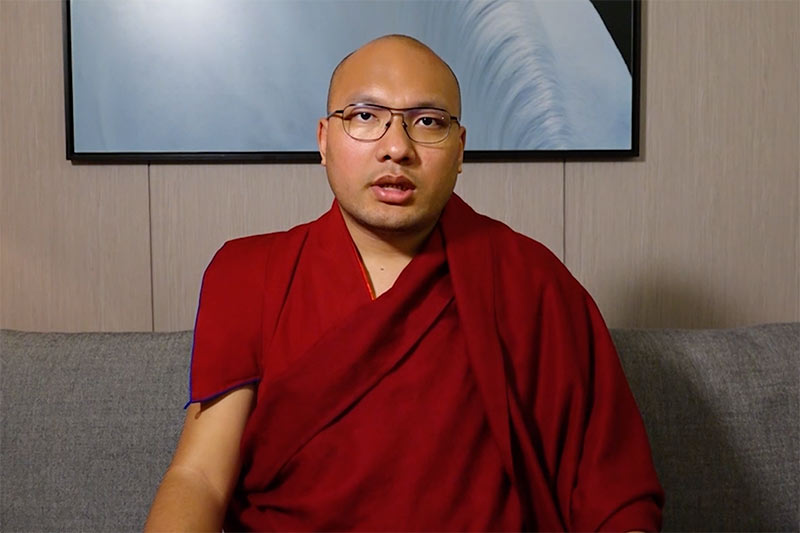 This afternoon of the sixth day of the Kagyu Monlam, we recite for the sake of the deceased The Sutra in Three Sections, which is also known as Confession of Downfalls, the sutras of the dharani of Akshobhya, and the Aspiration for Rebirth in the Realm of Abhirati. I would like to take this opportunity of dedicating the virtue for the sake of the deceased to make a request to all of you.