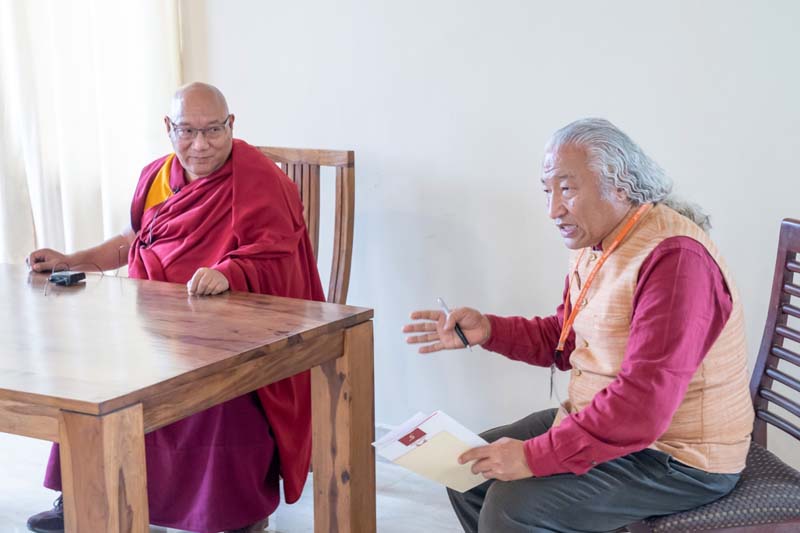 Ngondrup Tsering translating during the interview with Khen Rinpoche