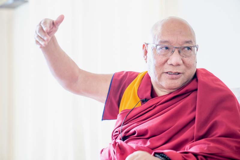 The Kagyu Monlam publicity team was lucky to have the chance to interview Khenpo Lodro Donyo Rinpoche, Bokar Yangsi Rinpoche’s tutor, who generously shared his thoughts with us on the day following the auspicious occasion of bestowing Barma Rabchung vows on the young tulku. Ngodup Tsering translated. An edited transcript follows.