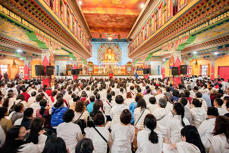 He noted to the audience members that, “In the course of the Monlam, aspirations are being made for all of your benefit, including for your own worldly and spiritual well-being. Also, our collective action of praying together brings benefit for the world in general, for the flourishing of the Dharma, and the Kagyu lineage and for His Holiness the Dalai Lama’s longevity as well as for all other masters.”