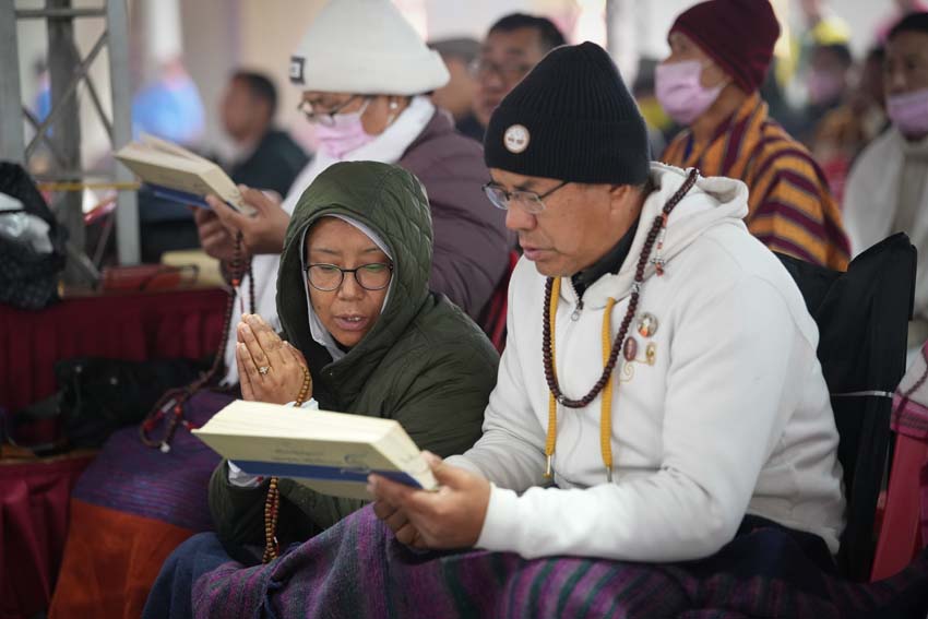 Meanwhile in the pavilion, the congregation began the Offerings to the Gurus, the sutra-based guru puja compiled and composed by His Holiness the 17th Gyalwang Karmapa, which contains the twenty branches.