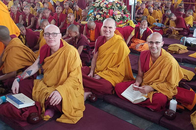 But for some of the western sangha, the roots of Dharma spread back many years and each year at the Monlam, you will find a scattering of long-established western monks and nuns. Some have been coming for years. Some have lived for long periods in India or Nepal, serving as English teachers and volunteers in the monasteries of their teachers. Most have endured significant hardship in pursuit of the dharma. Here are two of their stories.