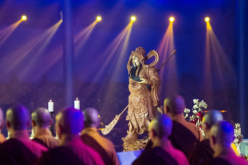 The protector Sangharama, also known by the name Guan Yu or Guan Gong, is a Chinese deity but also one of the protectors of the Karmapa’s Tsurphu Monastery in Tibet.