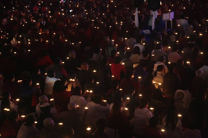 19. The sea of offering lights shimmer and sway to the sound of the offering prayer.