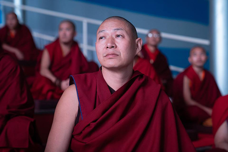 16. A group of joyous monks whole-heartedly join in chanting the Lamp Offering Prayer.