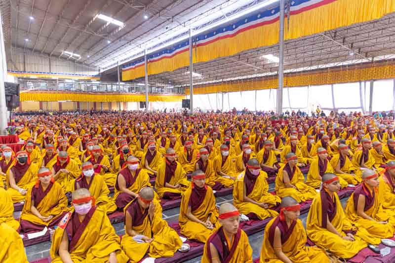 On December 25, 2025, under instructions from the 17th Gyalwang Karmapa, His Eminence Goshir Gyaltsab Rinpoche bestowed the empowerment of Vairocana Abhisaṃbodhi [The Complete Awakening of Vairocana]. The empowerment was attended by thousands of practitioners, both monastic and lay, from India, Nepal, Bhutan and further afield. The empowerment consists of two parts - the preliminary and the main sections. Since the preliminary section had been completed the previous day, today the main empowerment was completed in its entirety.