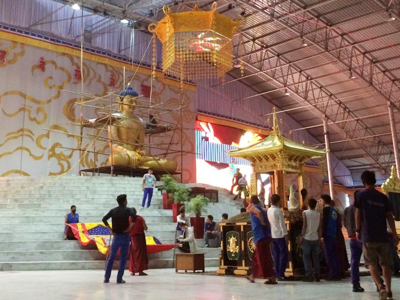 Hundreds of nuns, monks and laypeople are working non-stop to finish the preparations for the upcoming Monlam. The first major event will be the Chakrasamvara Empowerment, to be given by His Holiness the 17th Karmapa, Ogyen Trinley Dorje, on the afternoons of 7th and 8th February, 2017.