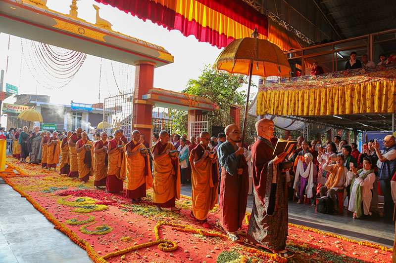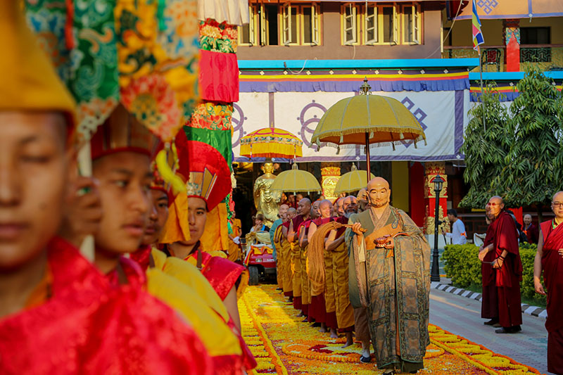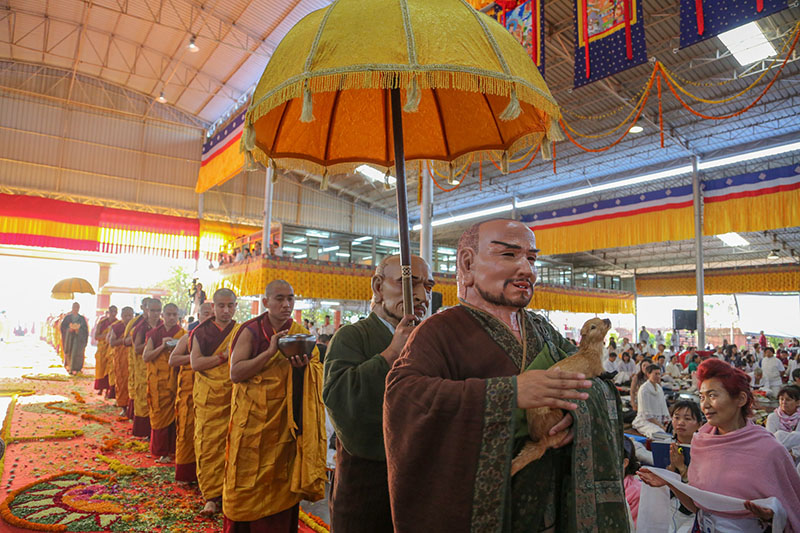 6. Each arhat was followed by his retinue, in the form of the gelongs and gelongmas, the number of monastics representing the correct number in the retinue according to the Kagyu Monlam text.