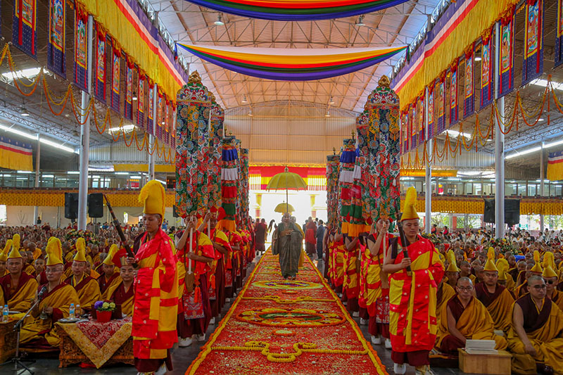 8. The assembled devotees held up their khatas and chanted “Namo Shakyamunaye” as the procession passed in stately and dignified silence.