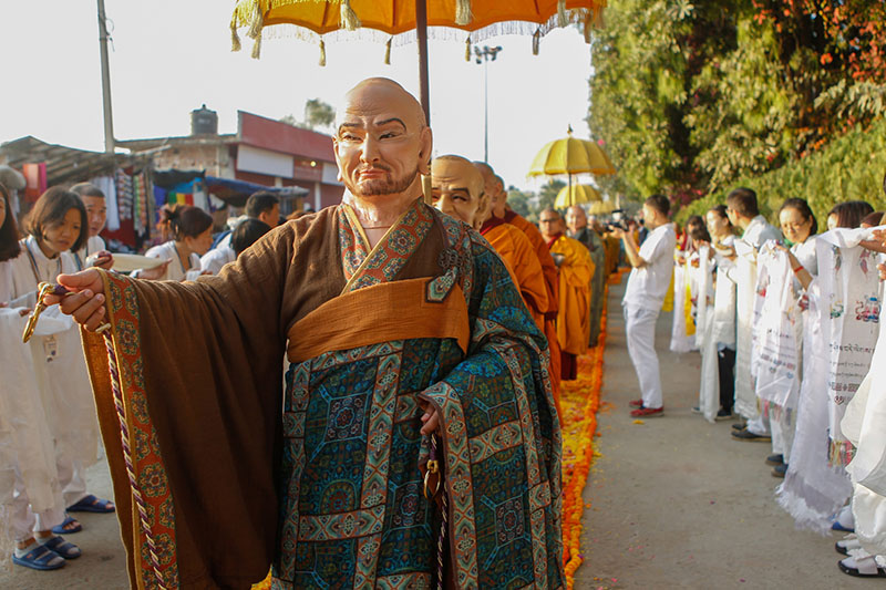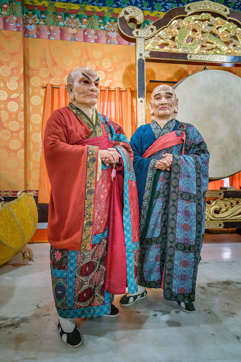 2. In their beautiful robes designed by a famous Chinese costume maker, the arhats were regal and magnificent.