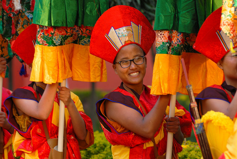 3. First came the gyaling players, followed by victory banners and parasols, and then the incense bearers.