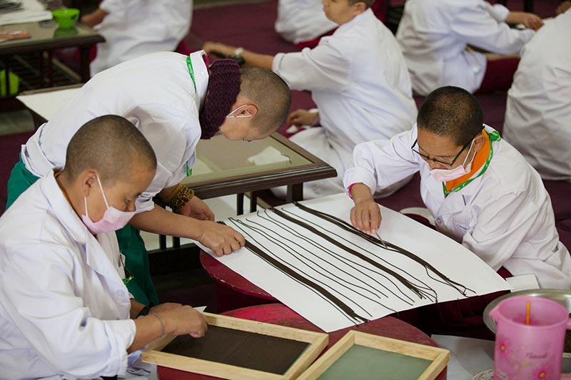 However, the Gyalwang Karmapa visited the project nearly every day to speak with the nuns and assist them in the work. Not only did he encourage them by saying how well they were doing, but he even helped them grind the ingredients by hand himself. The nuns explained that His Holiness’s involvement and support gave them the enthusiasm and determination to keep going when the work was difficult or they felt tired.
