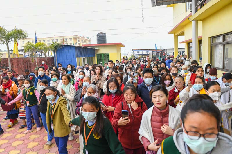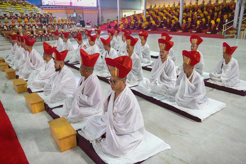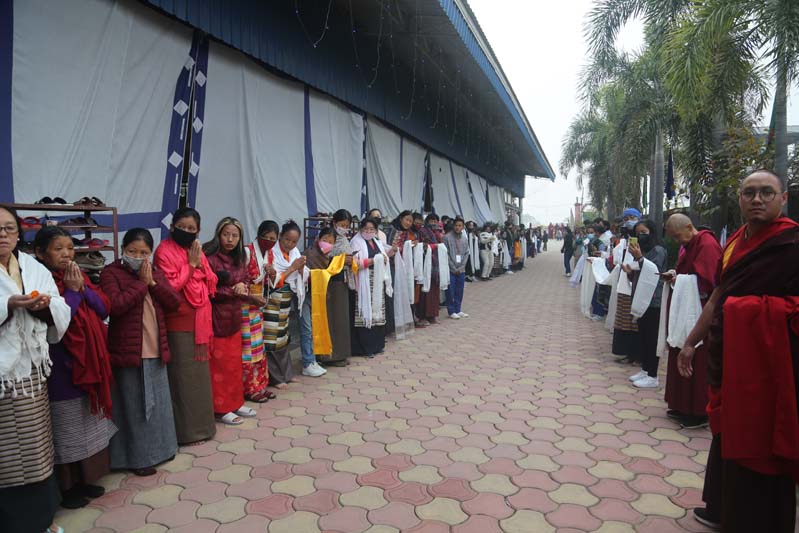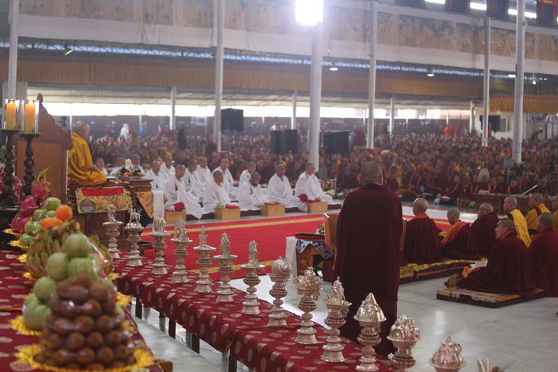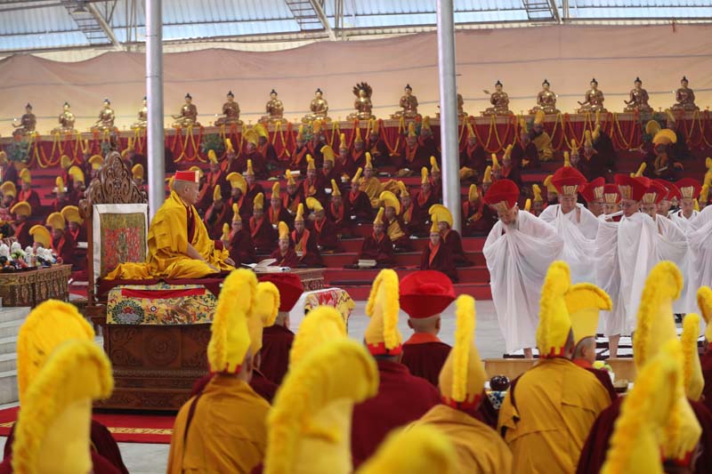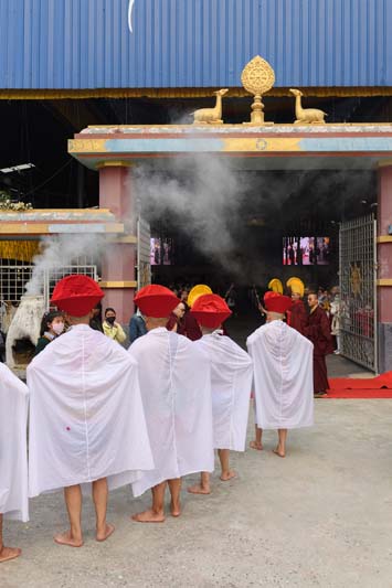 20. His Eminence Gyaltsab Rinpoche and the rest of the assembly welcomes the retreatants