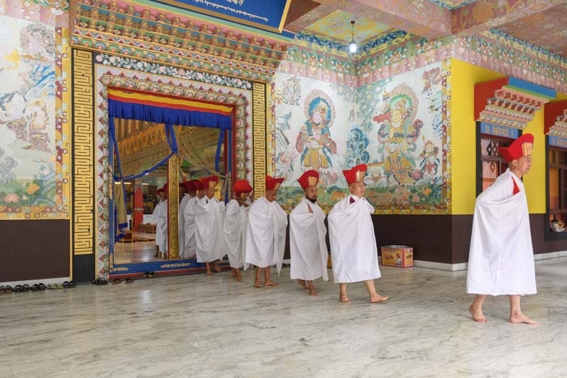 3. The yogins leave the Tergar shrine room.