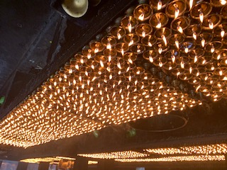 On February 17th, the final day, they again made the traditional seven-bowl offering, the offering of a new set of robes for the Buddha image, and offered 6000 butter lamps as an expression of gratitude and thankfulness to Lord Buddha, the Bodhisattvas and so forth for their blessing and kindness in the success of the Monlam.