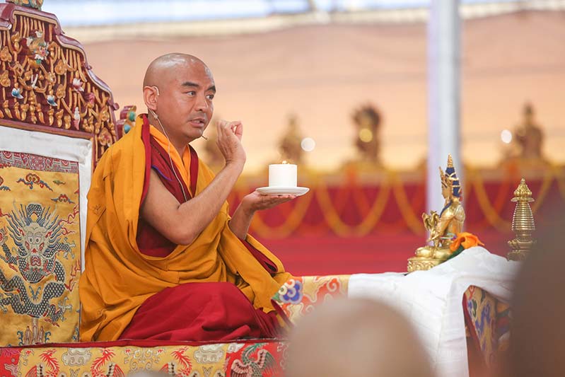 Following recitation of the Praises of the Twenty-One Taras during the tea break, Kyabje Yongey Mingyur Rinpoche laughingly posed the question to all the Kagyu Monlam attendees, “How many meditated? Did you get distracted and forget?” After polling everyone on their practice during the break, he reiterated the importance of formal, silent practice sessions and informal practice embodied during any activity whether walking, standing, drinking tea, and so forth. Practicing in this informal way helps to pacify afflictions and suffering because it becomes the ground for training and developing strength in formal sessions.