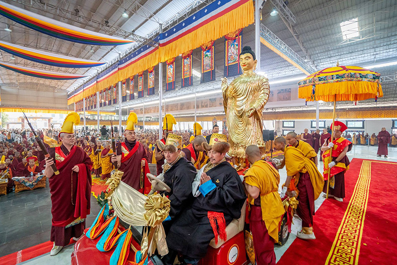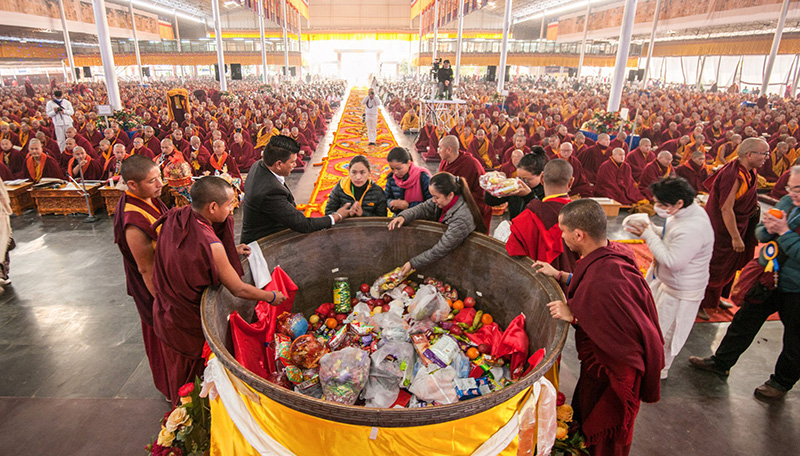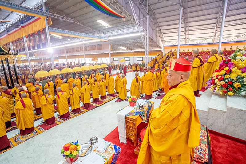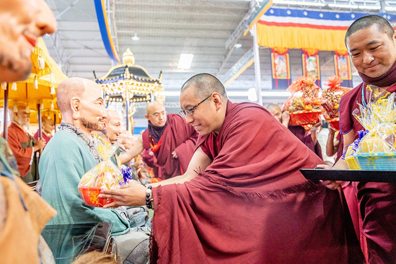 22. Tsurphu Labrang, the Karmapa’s Office of Administration, is first to make offerings to the Arhats, followed by Gyaltsab Rinpoche’s Labrang.