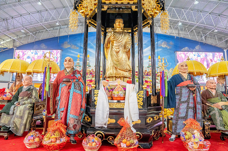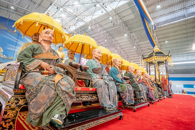 5. The Arhats line up inside the shrine room, ready to begin the procession.