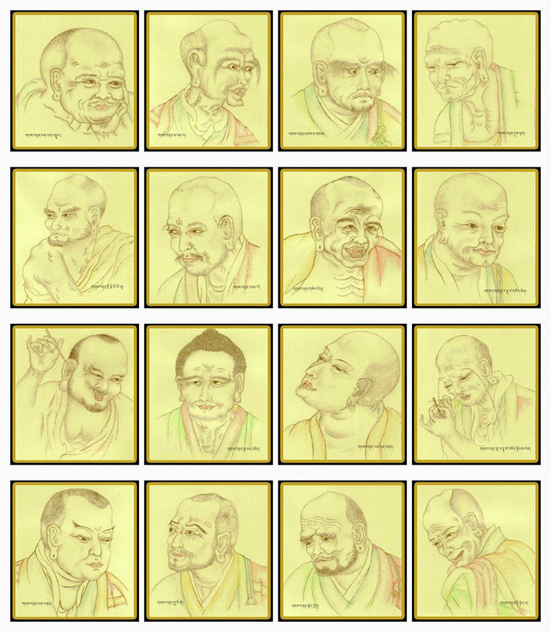The Sixteen Arhats were chosen by Shakyamuni Buddha himself from amongst his disciples. He asked them to remain in the world, protecting the Dharma for as long as beings were capable of benefiting from the teachings, and so, at the time of the Buddha’s parinirvana, the Arhats vowed to remain in the world and maintain the Dharma until the teachings came to an end, which will happen when the next World Buddha appears.