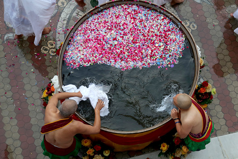Comprised only of monks who have completed the traditional three-year retreat in the Kagyu tradition, this ceremony is a test of their accomplishment as yogis and takes place on the last day of the Monlam. It was incorporated into the Monlam by His Holiness the 17th Gyalwang Karmapa during the 34th Monlam in February 2017, following a tradition established by the 7th Karmapa, Choedrak Gyatso.