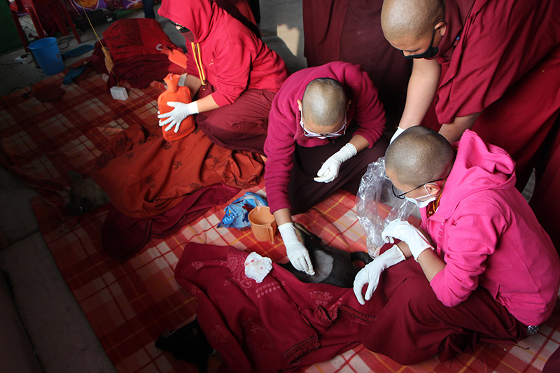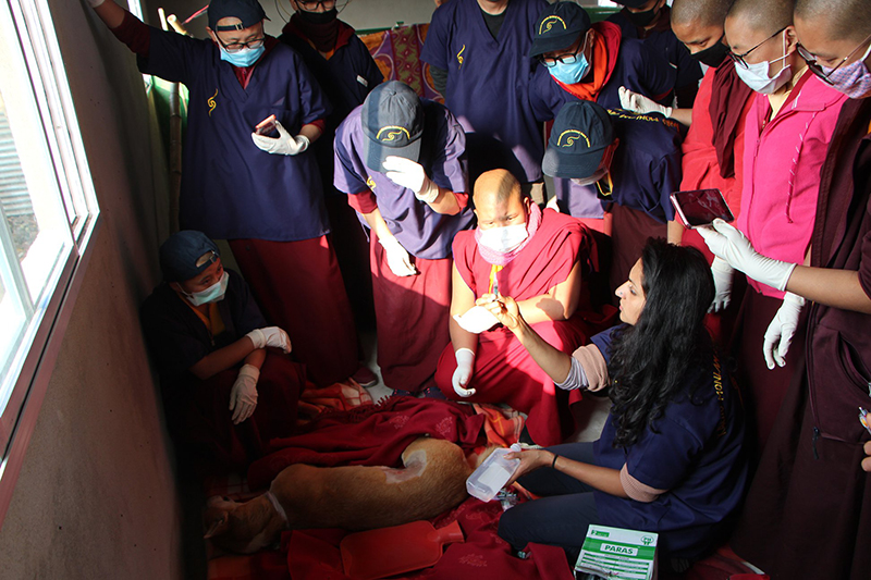 The training is being led by three vets, Dr Diki Palmo from Sikkim, Dr Catherine Schuetze from Australia and Dr Sonia Thakur from Dharamsala Animal Rescue.