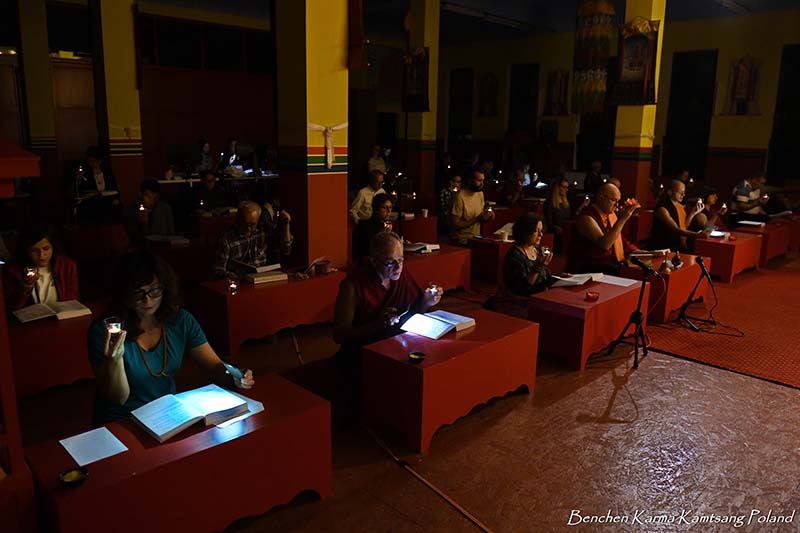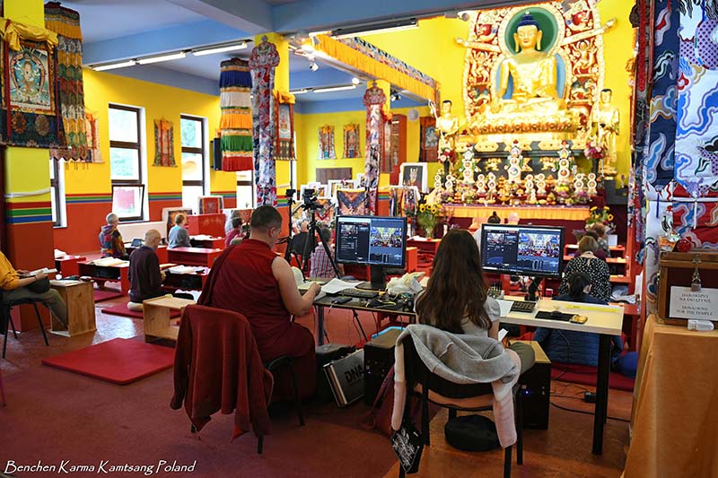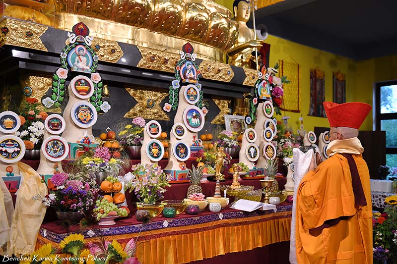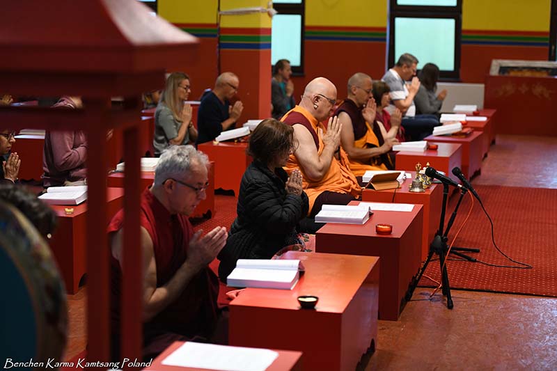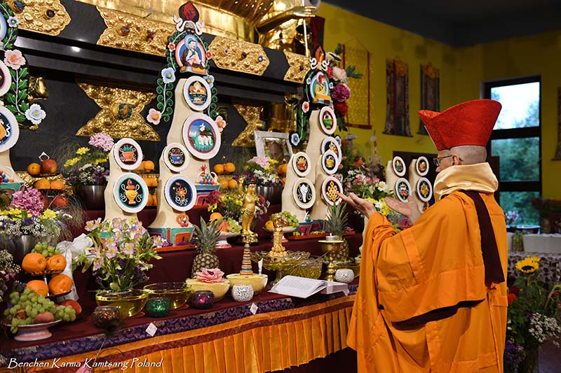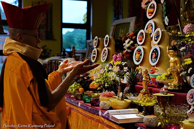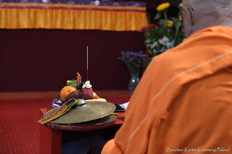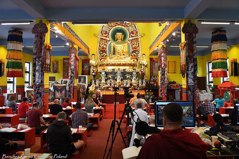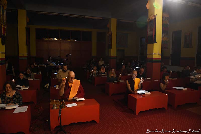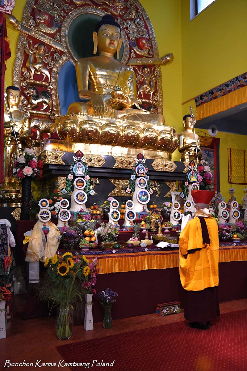 Due to the pandemic situation, no Tibetan Lamas could come to Poland this year. Also, according to epidemiological rules, only a limited number of people could stay in the temple. However, the head of Benchen Monastery, His Eminence Drubwang Sangye Nyenpa Rinpoche, advised us to continue our yearly practice of holding a Kagyu Monlam, even with a small assembly. Rinpoche said that the number of people is not important; what is important is to maintain the continuity of practice. Also Ven. Sangter Tulku Rinpoche, who has most often presided over our Kagyu Monlam in previous years, encouraged us very strongly to maintain this activity.