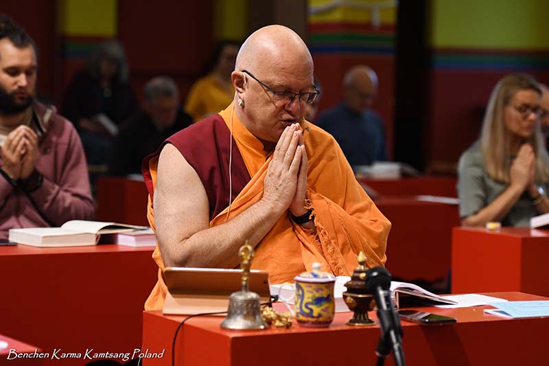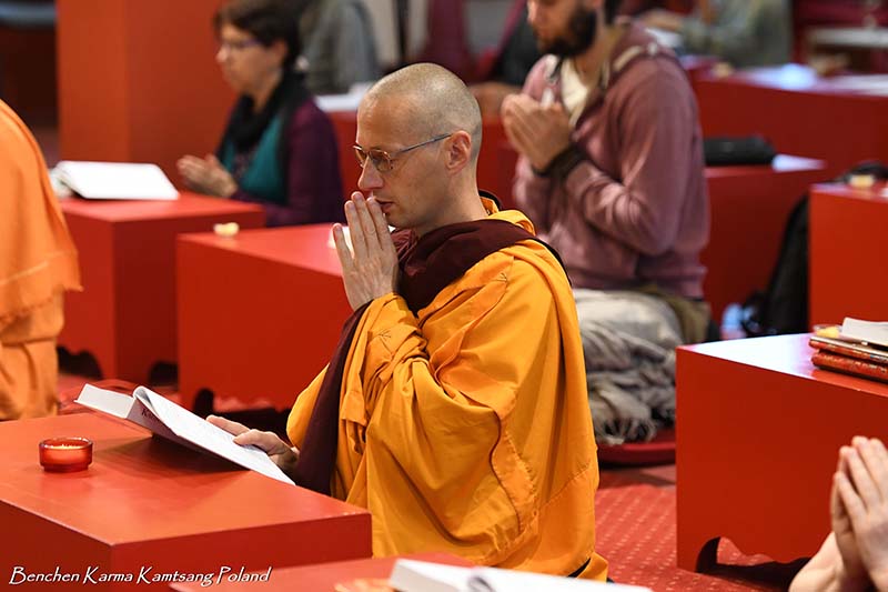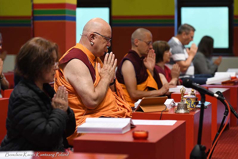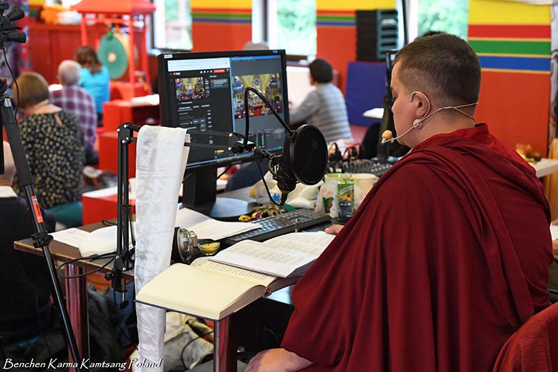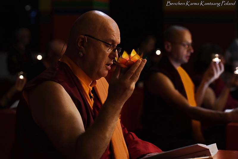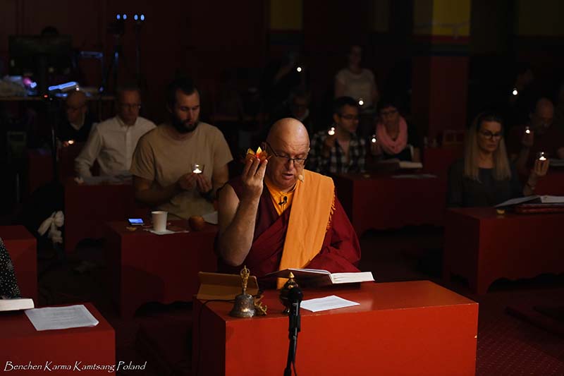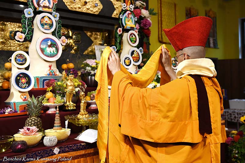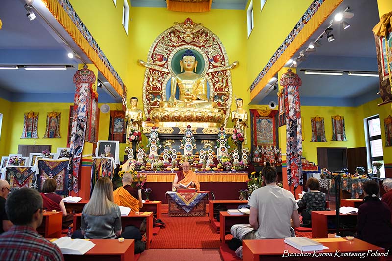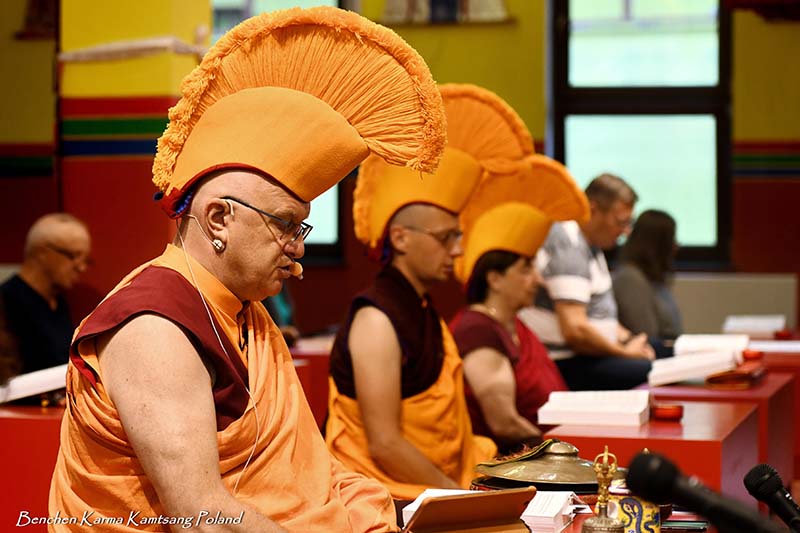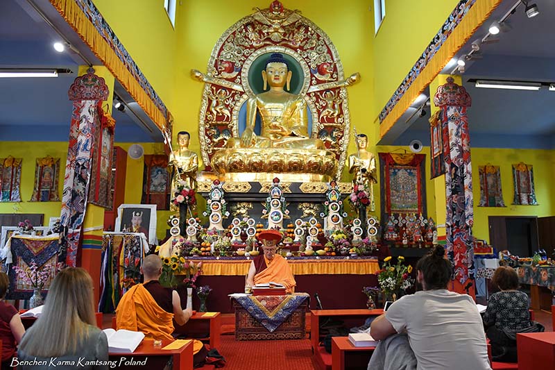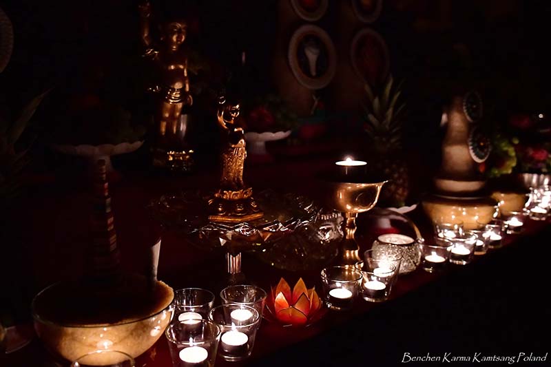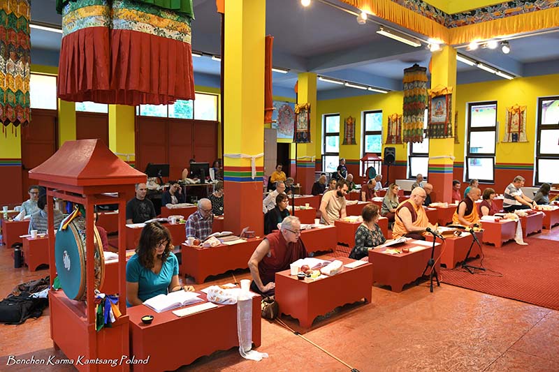 Due to the pandemic situation, no Tibetan Lamas could come to Poland this year. Also, according to epidemiological rules, only a limited number of people could stay in the temple. However, the head of Benchen Monastery, His Eminence Drubwang Sangye Nyenpa Rinpoche, advised us to continue our yearly practice of holding a Kagyu Monlam, even with a small assembly. Rinpoche said that the number of people is not important; what is important is to maintain the continuity of practice. Also Ven. Sangter Tulku Rinpoche, who has most often presided over our Kagyu Monlam in previous years, encouraged us very strongly to maintain this activity.
