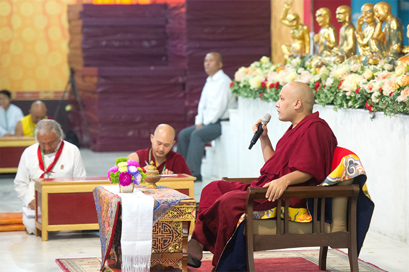 ཕྱི་ལོ་༢༠༡༧ ཟླ་༢ ཚེས་༡༥ ཉིན་གཏེར་སྒར་འདུ་ཁང་ནང་བཀའ་བརྒྱུད་སྨོན་ལམ་སྐབས་སོ་བཞི་པར་ཚོགས་ཞུགས་མཛད་པའི་ཚོགས་མི་ཆིག་སྟོང་བཞི་བརྒྱ་བརྒལ་བ་འཛོམས་འདུག་ཅིང་། དེ་དག་གི་ཡིད་རེ་སྐོང་ཕྱིར་དཔལ་༸རྒྱལ་དབང་ཀརྨ་པ་མཆོག་གུང་ཡོལ་དུས་ཚོད་གསུམ་པ་ཙམ་ལ་འདུ་ཁང་དུ་ཆིབས་སྒྱུར་བསྐྱངས་ཏེ་བཀའ་སློབ་ཕེབས་གསལ་དུ། དེ་རིང་བཀའ་བརྒྱུད་སྨོན་ལམ་སྐབས་སོ་བཞི་པར་ཕེབས་པའི་ཚོགས་མི་ཡོངས་ལ་འཚམས་འདྲི་ཞུ་རྒྱུ་ཡིན། བཀའ་བརྒྱུད་སྨོན་ལམ་ཚུགས་ནས་ད་བར་ཐེངས་སོ་བཞི་པ་ཡིན། དེས་ན་སྨོན་ལམ་རིམ་པ་བཞིན་དུ་སྨོན་ལམ་གྱི་ཚོགས་མི་རྣམས་ཀྱང་གོང་དུ་འཕེལ་བཞིན་མོད། སྤྱིར་བཏང་ངོས་རང་ཐོག་མར་སྨོན་ལམ་དུ་སླེབས་སྐབས་མ་ཧཱ་ཡ་ནའི་མགྲོན་ཁང་དུ་འདུག་བཞིན་ཡོད། དེ་སྐབས་མ་ཧཱ་ཡ་ནའི་ཤོད་དུ་ཚོགས་ཁང་ཞིག་ཡོད་པར་དེའི་ནང་ཚོགས་བཞིན་ཡོད་པས་སྐབས་དེར་ཚོགས་ཁང་དེ་ཉིདཆེན་པོ་ལྟ་བུར་སྣང་། དེ་མཇུག་ཞེ་ཆེན་དགོན་པར་བསྡད་དེ་སྨོན་ལམ་ཚོགས་མི་རྣམས་ཞེ་ཆེན་དགོན་པའི་འདུ་ཁང་ནང་ཚོགས་པ་དང་། དེའི་ནང་དུག་སྦྲང་ཡང་ཧ་ཅང་ཤས་ཆེ་མོད། དེ་རྗེས་ཐ་ཡི་དགོན་པར་ཚོགས། དེ་ནས་གཏེར་སྒར་དགོན་དུ་ཐོག་མར་ཚོགས་ཤིང་སྐབས་དེར་འདུ་ཁང་ནང་མི་ཤོང་བ་མེད་སྙམ་ལྟ་བུར་ཚོར། དེ་རྟིང་བཀའ་བརྒྱུད་སྨོན་ལམ་ཆོས་ར་གསར་བཞེངས་མཛད་ནས་དེའི་ནང་དུ་མི་ཆིག་ཁྲི་ཙམ་ཤོང་བས། དེར་མི་ཤོང་བ་ནམ་ཡང་མེད་སྙམ་པ་ལྟ་བུ་བྱུང་ཡང་། ཉེ་ཆར་བདེ་མཆོག་དབང་སྐབས་དེ་ཡང་ཆུང་དྲགས་པ་ལྟ་བུར་གྱུར་ཏེ་རིམ་པས་འཕེལ་སྐྱེད་འགྲོ་བཞིན་ཡོད་པས། ལོ་རེ་བཞིན་ཚོགས་མིའི་གྲངས་ཀྱང་ཇེ་མང་དུ་འགྱུར་བཞིན་ཡོད་པ་མ་ཟད་འཛམ་གླིང་ཤར་ནུབ་ཀྱི་རྒྱལ་ཁབ་ལྔ་བཅུ་ཙམ་ནས་མི་སྣ་འདྲ་མིན་དུ་མ་སླེབས་ཡོད། སྤྱིར་གྲངས་ཀ་མང་བ་ཁོ་ན་གཙོ་ཆེ་བར་མི་འགྱུར་ཞིང་། གཙོ་བོ་རང་རེ་ཐམས་ཅད་ཀྱིས་འཛམ་གླིང་ཞི་བདེ་ཡོང་བའི་ཕྱིར་དུ་སྨོན་ལམ་འདོན་བཞིན་པ་དང་། དེ་ཉིད་དོན་དང་ལྡན་པ་ཞིག་ཏུའང་འགྱུར་བཞིན་ཡོད། དེ་ཡང་རྗེ་བདུན་པ་ཆོས་གྲགས་རྒྱ་མཚོའི་སྨོན་ལམ་ནང་། ཡུལ་དང་སྐད་རིགས་མི་གཅིག་པ། །མི་རིགས་རྣམ་པ་སྣ་ཚོགས་པ། །བདེ་སྐྱིད་ཡང་ཡང་འདིར་ཚོགས་ཤོག །བཀྲ་ཤིས་དེ་ཡིས་བཀྲ་ཤིས་ཤོག །ཅེས་ཐུགས་སྨོན་མཛད་པ་ཇི་བཞིན་ད་ལྟ་མཐོང་ཆོས་སུ་གྲུབ་ཡོད། དེ་ལྟར་སྨོན་ལམ་འདེབས་སྐབས་སེམས་ཅན་ཐམས་ཅད་དམིགས་འོག་ཏུ་བཅུག་སྟེ་དེ་དག་མ་ལུས་བདེ་སྐྱིད་ཡོང་བ་དང་། རྒྱལ་བསྟན་དར་ཞིང་རྒྱས་པའི་ཕྱིར་དུ་སྨོན་པའི་སེམས་བསྐྱེད་རྒྱ་ཆེན་པོ་བྱ་དགོས། དེ་ཡང་དཔེར་ན། ད་ལན་བོད་ནས་གནས་སྐོར་དུ་མཆོད་མཇལ་ཕྱིར་ཡོང་བའི་རྒན་རྒོན་འགའ་ཞིག་གིས་བླ་མ་རྩ་ཆེན་རྣམས་མཇལ་སྐབས་དེ་དག་གིས་སྙིང་ཐག་པ་ནས་མིག་ཆུ་དང་བཅས་ཏེ་འཛམ་གླིང་ཞི་བདེ་ཡོང་བ་