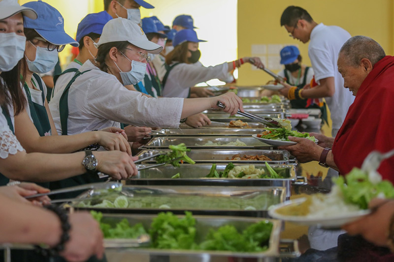 來自大陸的尼師噶瑪妙善說,2004年聽聞噶瑪巴有舉辦祈願世界和平的祈願法會,她自覺身為出家眾,更有責任去參與法會、祈願萬事和諧,因此除聽課外,也參加過3屆行堂組菩薩,而這次發心菩薩比往年少,讓她覺得自己更應當承擔更多責任,「因為這是我的家」。