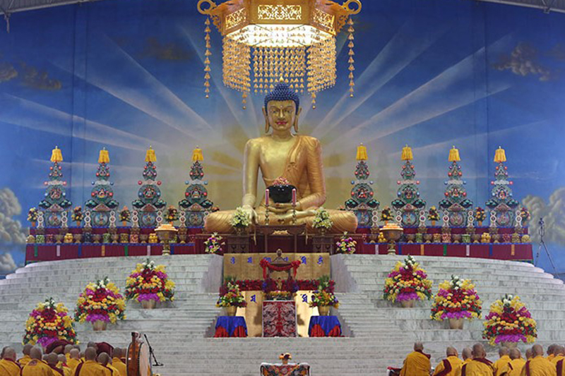 八大傳承多瑪中央的主題塑像,分別為寧瑪派祖師蓮花生大士、噶當派祖師阿底峽尊者、道果派祖師薩欽貢噶寧波、馬巴噶舉派祖師馬爾巴大譯師、香巴噶舉派祖師瓊波南覺、以「施身法」聞名的息解派祖師帕當巴桑傑、覺竹派祖師多波巴、以及修持氣脈為主的念竹派祖師鄔金巴。