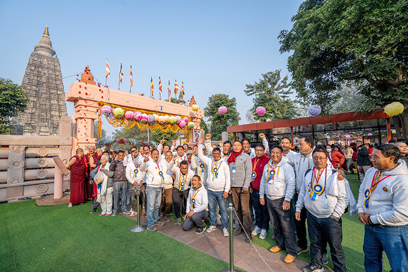 8. 扛經繞塔是噶舉祈願法會唯一在正覺大塔園區舉行的活動,這次由尼泊爾功德主團臨危受命協助維護秩序,首次擔此重任的涅香法友們歷經多次開會及演練,終於讓整個活動莊嚴禮成,在仁波切及僧眾們乘車返回祈願舞台區後,圓滿達成任務的團隊們開心的在大門口合影留念。