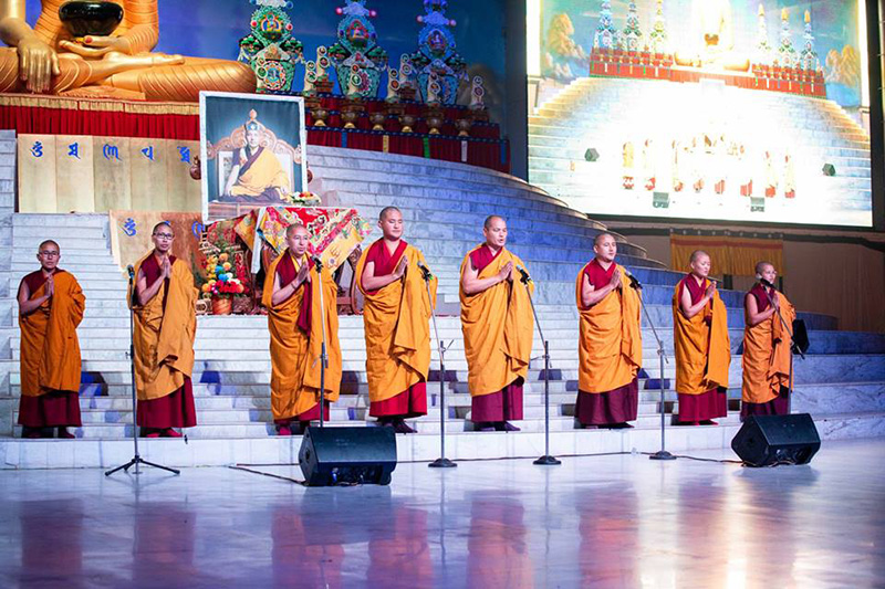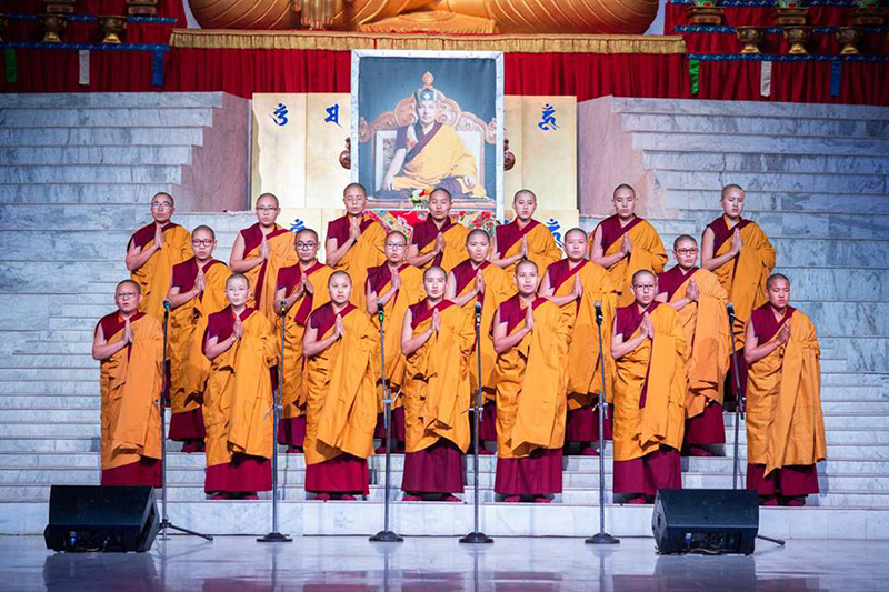 8. 首先以唱頌聞名的不丹竹德尼寺,派出20位尼眾,唱頌〈三寶歌〉。