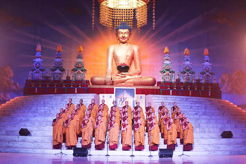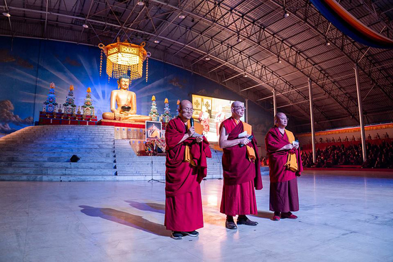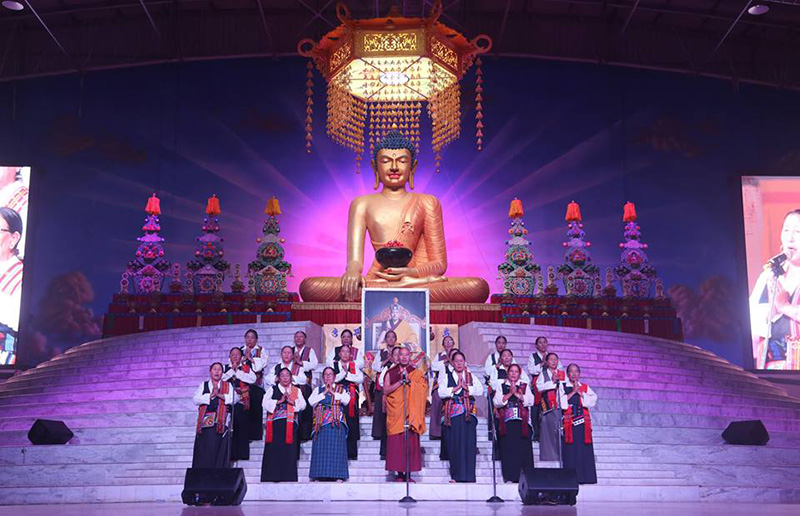 11. 來自自在瑜珈士密勒日巴尊者曾住山修持及加持的涅香地區功德主團,及涅香子弟尼泊爾列些林高級佛學院堪布確吉,共同唱頌六字大明咒及大悲咒,以虔敬音聲供養與會大眾。