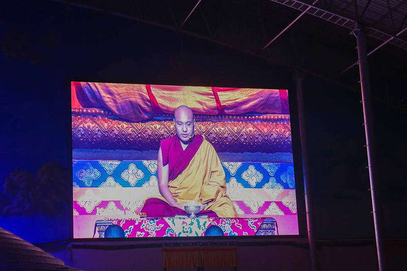 12. 法會最後播放法王2014年點燈祈願法會影片,帶領與會大眾以藏中英三語唱誦〈點燈祈願文〉。
